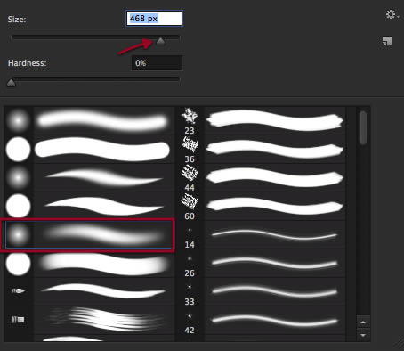And then select a nice soft brush such as this one and set its size as shown.