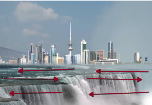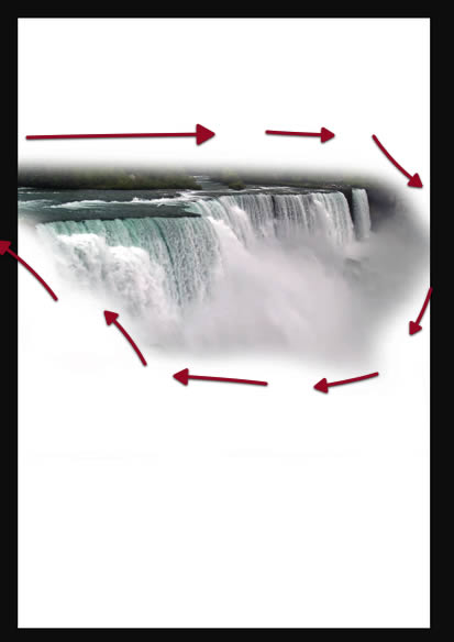 Then we need to position it as shown here, where we want to build up the continuity of the waterfall.