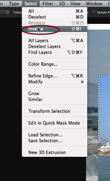 Once you have the selection, inverse it as shown here in the select menu.