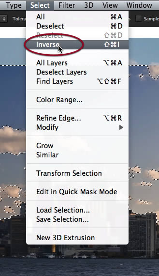 Make a selection ever what might have been left behind by the magic wand tool, to be sure we mask out the whole sky.