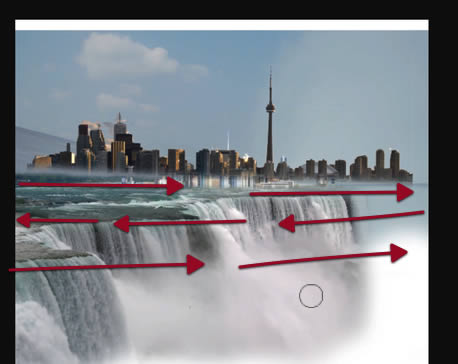 We will first flip this one horizontally, since we need the waterfall looking the other way.