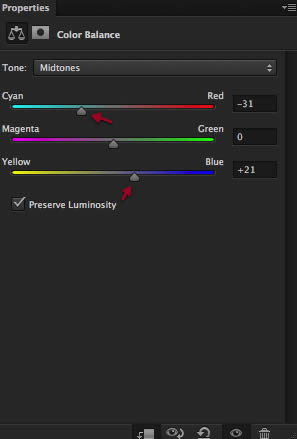 Now introduce a color balance layer and adjust as shown here, We are doing this for this layer first because we need to see if the image has the color depth needed to make it fit with the rest of the images. And that is it for this step we have our city layers setup and looking good enough to work with.